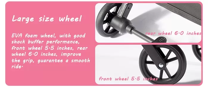 ◆ Large Size Wheels with Enhanced Performance: Equipped with EVA foam wheels, this lightweight collapsible stroller delivers exceptional shock absorption. The 5.5-inch front wheel and 6.0-inch rear wheel guarantee superior grip and a consistently smooth ride.
