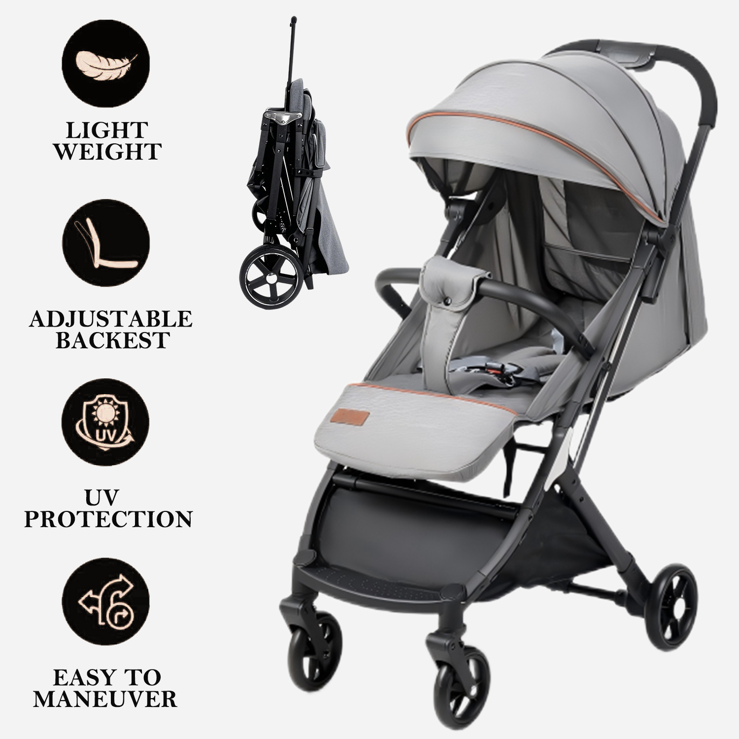 Designed to protect delicate skin, this stroller features a 50+ UV-rated canopy that blocks 99% of harmful rays. The breathable mesh seat prevents overheating, while the one-hand fold and lightweight frame make it perfect for travel. 5-point harness, it’s the ultimate choice for sun-safe adventures.