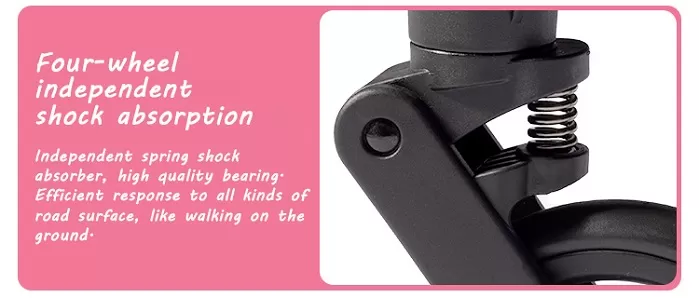 ◆ Four-Wheel Independent Shock Absorption: Indulge in unparalleled comfort with an independent spring shock absorber system. Superior quality bearings ensure efficient responses across diverse terrains, providing a ground-like walking experience for your little one.