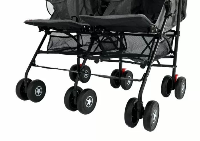 Designed with premium steel pipe material, these carriages guarantee lasting durability. They are built to withstand various terrains and usage, ensuring a safe and secure haven for your twins on every journey.